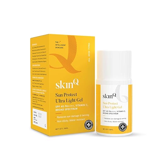 SkinQ Sunscreen for Men & Women 50ml with Vitamin C, SPF 40 & Broad Spectrum PA++++ | Sun Protect Ultra Light Gel suitable for All Skin Types | Lightweight, Non-Sticky & Water-Resistant